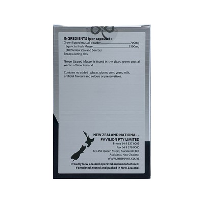모에버 초록입 홍합 3500은 뉴질랜드에서만 서식하는 홍합에서 추출된 높은 함량의 제품으로 각종 관절 질환의 치료 및 예방에 큰 효과가 있습니다. 초록입홍합은 관절의 활동성을 높여주고 연골의 재생, 뼈의 골밀도를 높여주는것으로 잘 알려져 있습니다.