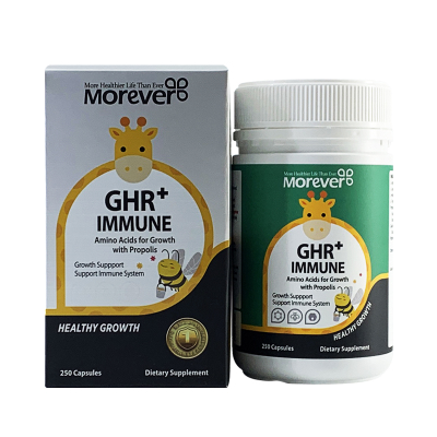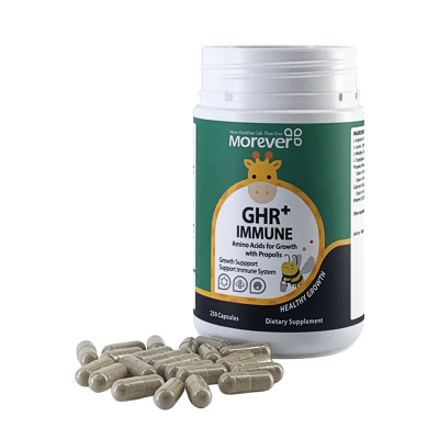 MOREVER GHR + IMMUNE is optimal combination of amino acids and propolis, important for growth and development of children. The amino acids may support growth hormones which maintain muscle development and fat metabolism. Propolis supports the body’s immune defense for optimal health and wellbeing.