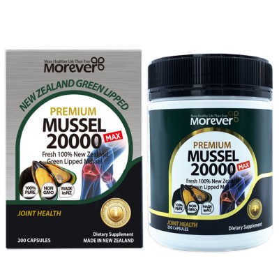 MOREVER GREEN LIPPED MUSSEL 20000 contains natural marine nutrients especially high strength concentration of amino acids, mucopolysaccharides and many other bioactive nutrients. Green Lipped Mussel is well known to support joint and cartilage health as well as joint mobility.